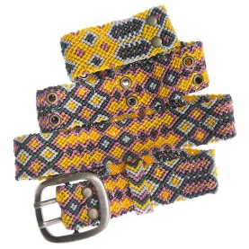 A hand-knotted belt from Peru in popular berry tones, a practical accessory that instantly elevates any outfit.These knotted belts originate in Peru and are handcrafted using traditional knotting techniques. Individual colored threads, up to 12 meters long, are meticulously knotted into beautiful geometric patterns. We work with women's groups from indigenous communities in the Andes, who receive a reliable and fair wage that contributes to their families' livelihoods.- Hand-knotted by women from indigenous communities in Peru- Three sizes: S = approx. 73 cm long, M = approx. 83 cm long, L = approx. 93 cm long- Width: approx. 3-3.3 cm- Available in many color combinations- Made of nylon threads- Care: Dry clean only- Unisex belt - can be worn by both women and men- Also popular as a golf belt