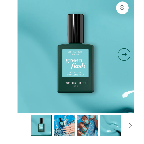 A semi-permanent turquoise blue nail polish, Green Flash™.An energizing blue with green undertones: think seaside stroll, cove, and pebbles.Since 2019, Manucurist nail polishes have been guaranteed TPO-free.